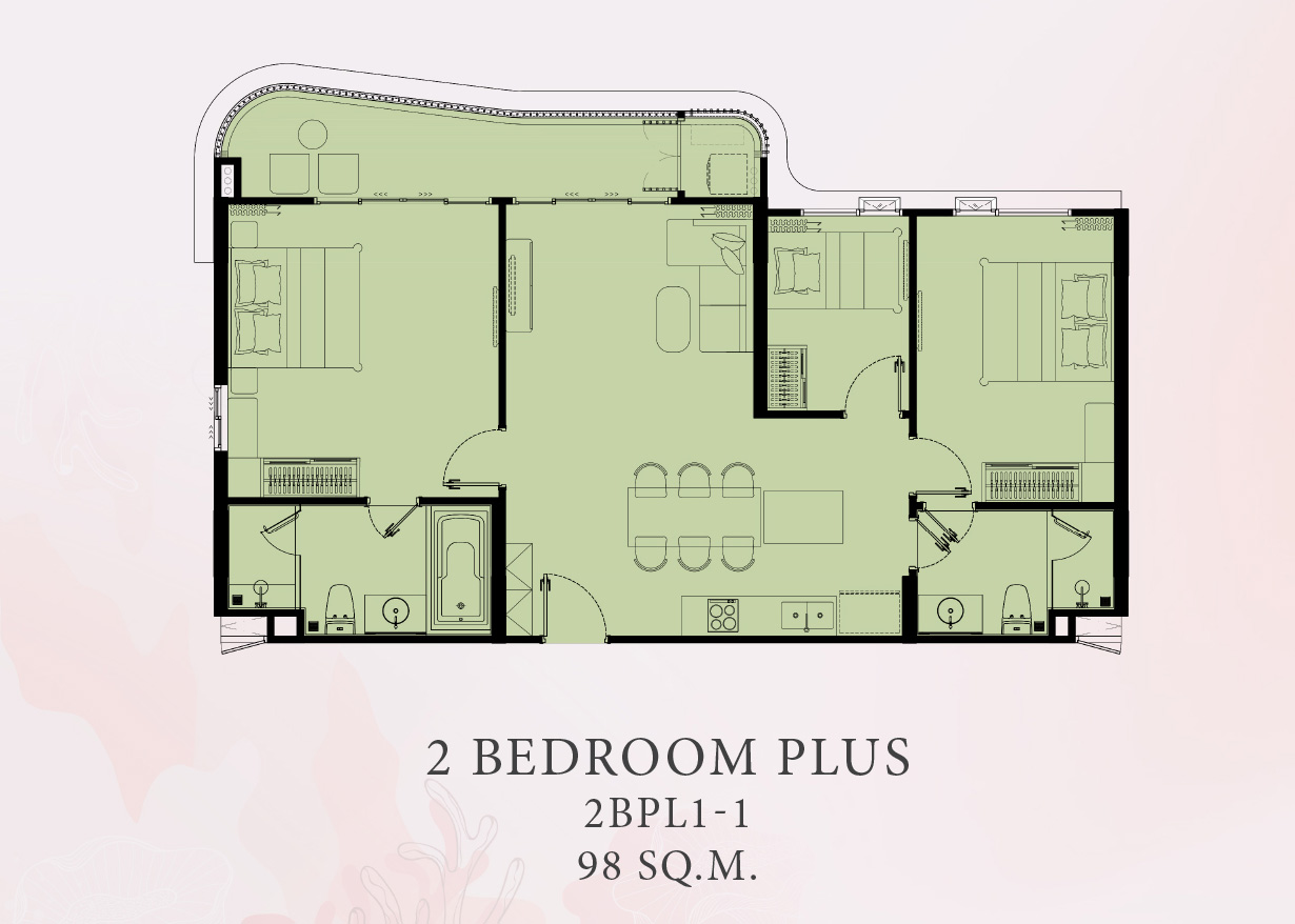 ✨ 2 bedrooms Plus unit – 98 to 107 sq.m – from 14,780,000 THB